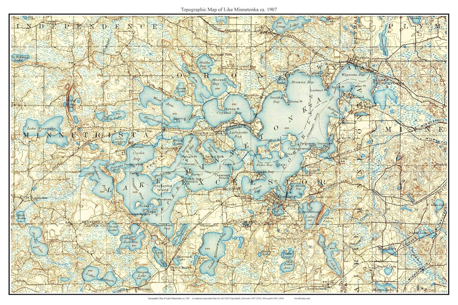 Amazon Com Lake Minnetonka 1907 Map Old Topographic Usgs Custom Composite Minnesota Handmade Products